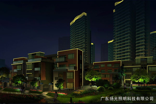 建筑頂部線條燈猶如高音,多層住宅的燈光猶如低音,環(huán)境部分的燈光猶如平音,燈光的層次猶如一首美妙的音樂,高低起伏,悠緩舒暢。