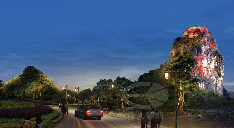 入口山體“樂養(yǎng)”字體燈光設(shè)計+山體燈光