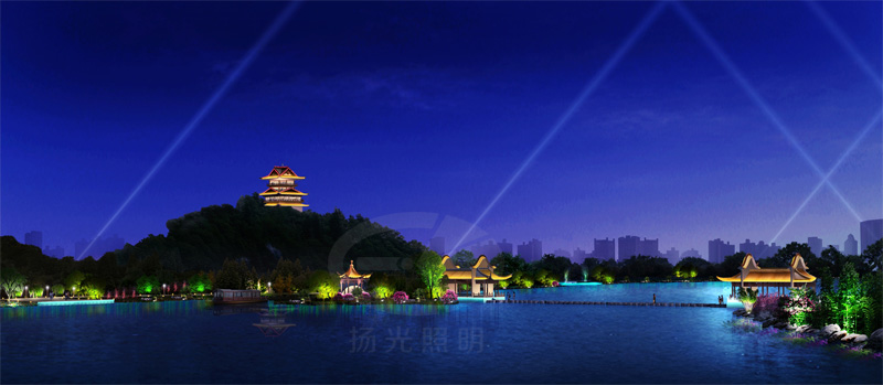 公園夜景照明設(shè)計,以園內(nèi)所有的建筑色彩、景觀造型、植被、蘊涵文化及游樂項目等都為照明元素,突出景觀造型、建筑特色、滿足人們的游園安全和提供游園線索,并營造藝術(shù)性、特殊性的獨特視角。
