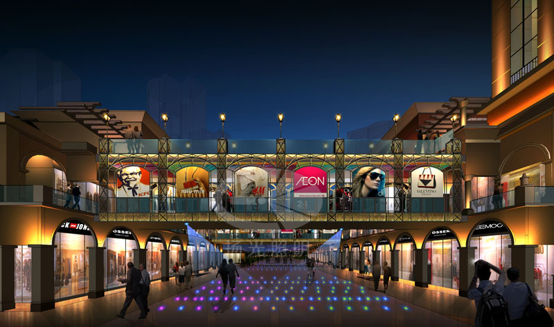商業(yè)街戶外景觀照明——良好的商業(yè)街照明不僅可以展示商業(yè)街與城市的特色,也可以給顧客和路人留下深刻的印象,特別是對樹立商業(yè)街形象有著重要的作用。商業(yè)街需要燈光起到良好的視覺誘導性,照明的明暗分布要合理,突出重點,層次感要強,創(chuàng)造一個有機的整體效果。