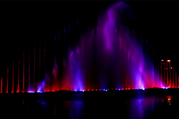 水幕:高壓水霧形成 “流動(dòng)屏幕”,光影與水花融合,適配湖泊、噴泉、河道。